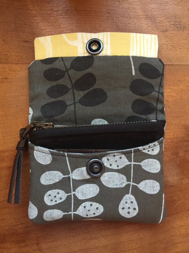 This design for this wallet offers you an option for a main and a coordinating fabric; allowing you to have fun choosing your fabric. Be subtle or wild and crazy, co-ordinate it with your purse, or make something totally different! If you do attempt to use a piece of leather for the tab, be careful to get the correct snap for the right type of fabric (or leather). I learned this the hard way and ended up switching to a fabric tab in the accent fabric.