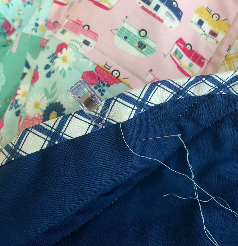What can you do during a Pandemic and you are stuck at home in lockdown? An indoor picnic of course! Prior to the lock-downs and stay at home orders, I purchased some Riley Blake I’d Rather be Glamping fabric to make a picnic quilt. I fell in love with this fabric the first time I saw it and have made ‘Glamping’ tote bags for my friends and family who camp.