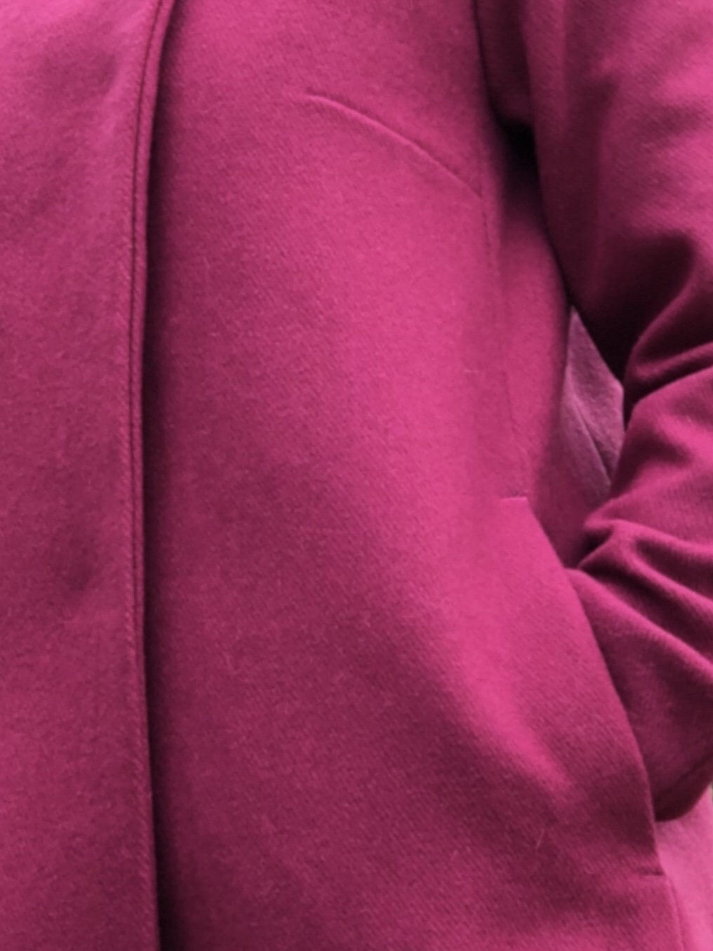 I am thrilled with the look! The pattern has that 60s swing shape that I love and the directions are easy to follow. The lines are crisp and clean and the simple pocket details are lovely. I had to make the arms a smidge wider around the biceps to offer enough room for a sweater. I think I will add an extra 1/2” to the arms length should I make it again. The length is fine as is, but I just like a little extra hand tuckablity in my coats.