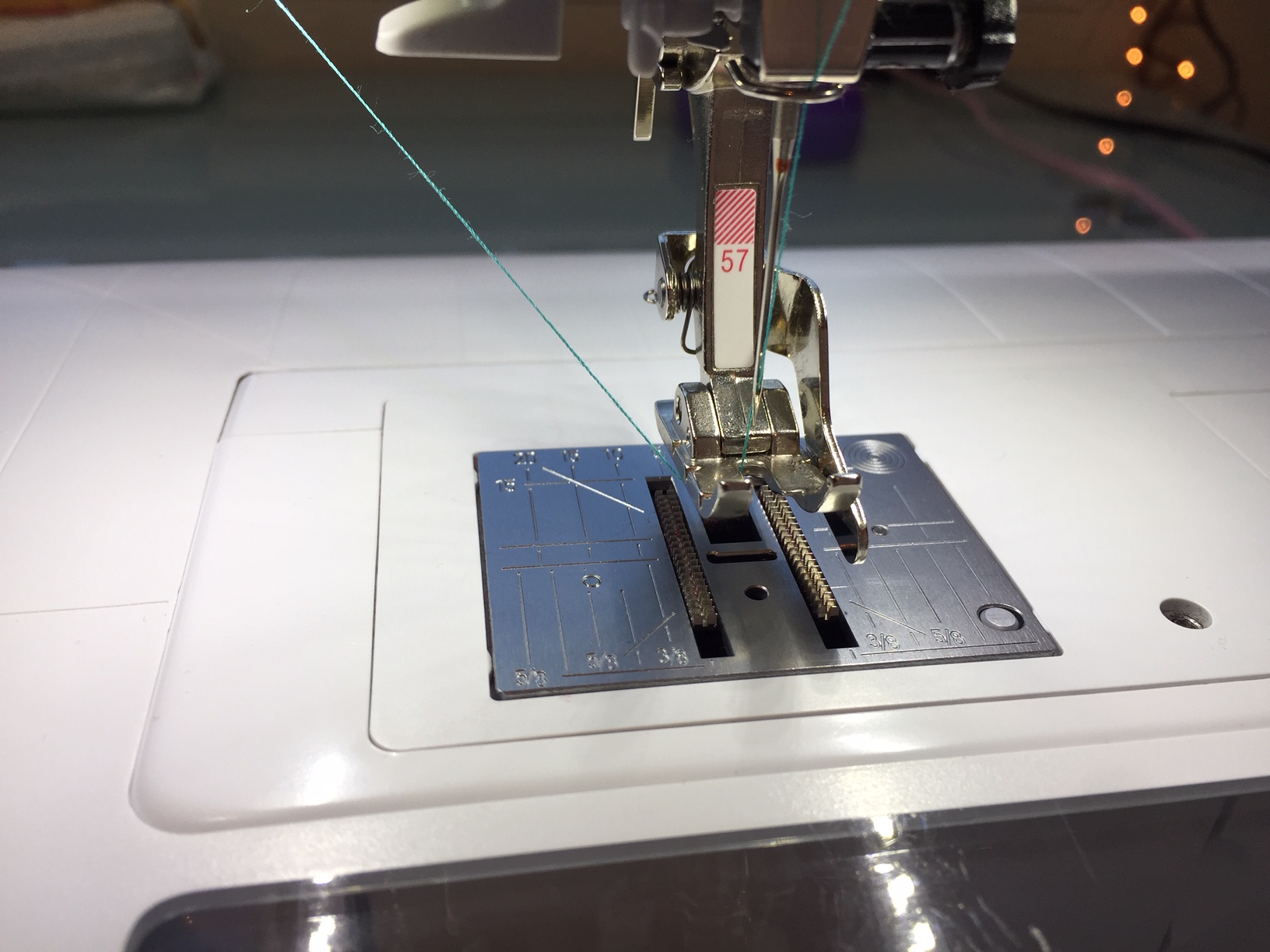 4. Sew along the two long sides using a ¼” seam allowance (DO NOT sew the short side, this needs to stay open). I use my ¼” quilting foot (Bernina #57) on my sewing machine for this, but if you don’t have this type of foot, you can use a piece of coloured tape on the plate part of your machine to help guide you. Pivot at the bottom of the triangle so you get a nice crisp point. Don’t forget to backstitch at the beginning and the end of your triangle.