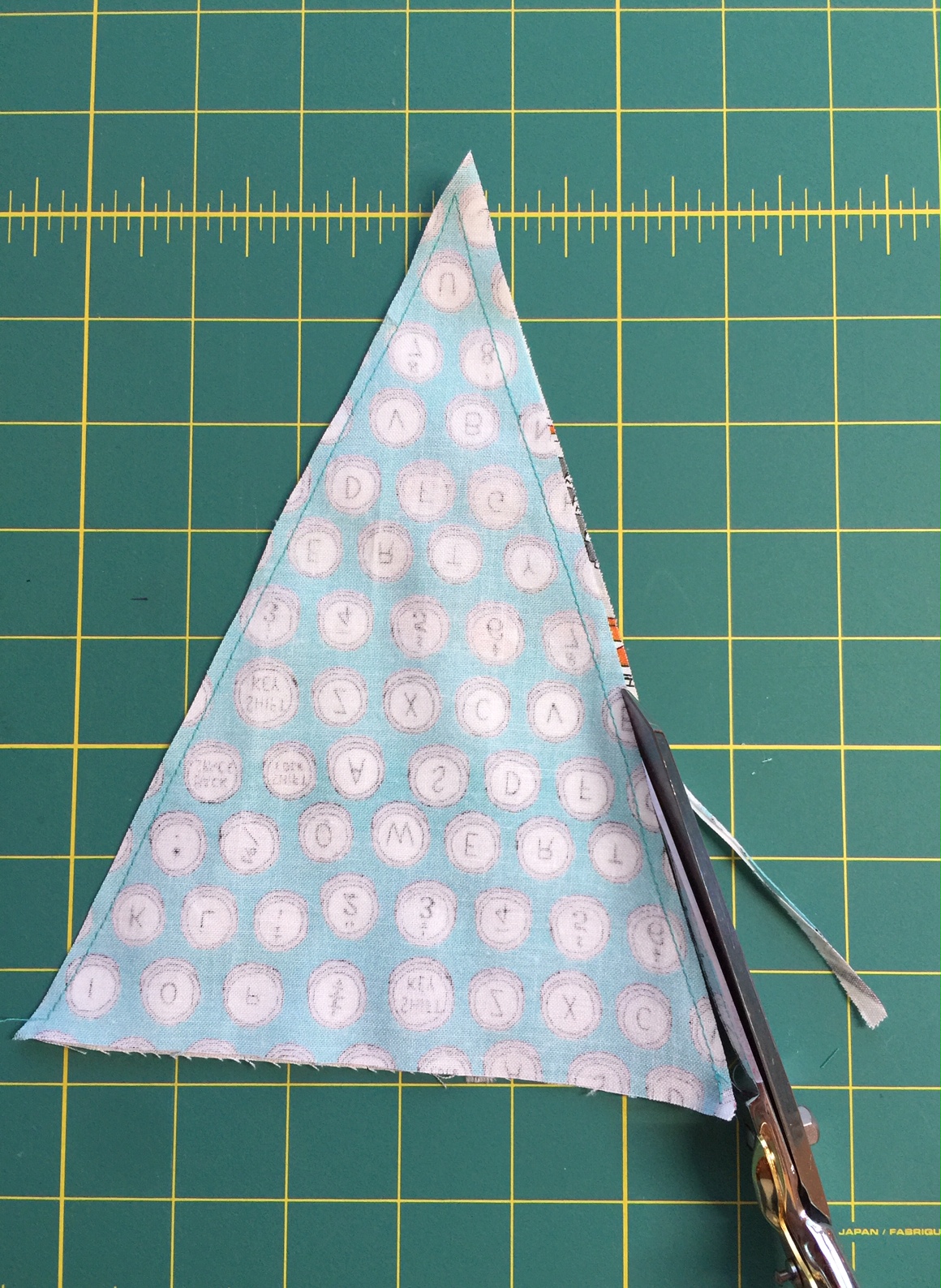 5. Trim away any excess fabric around the edge of the triangle being careful not to get too close to the stitches.