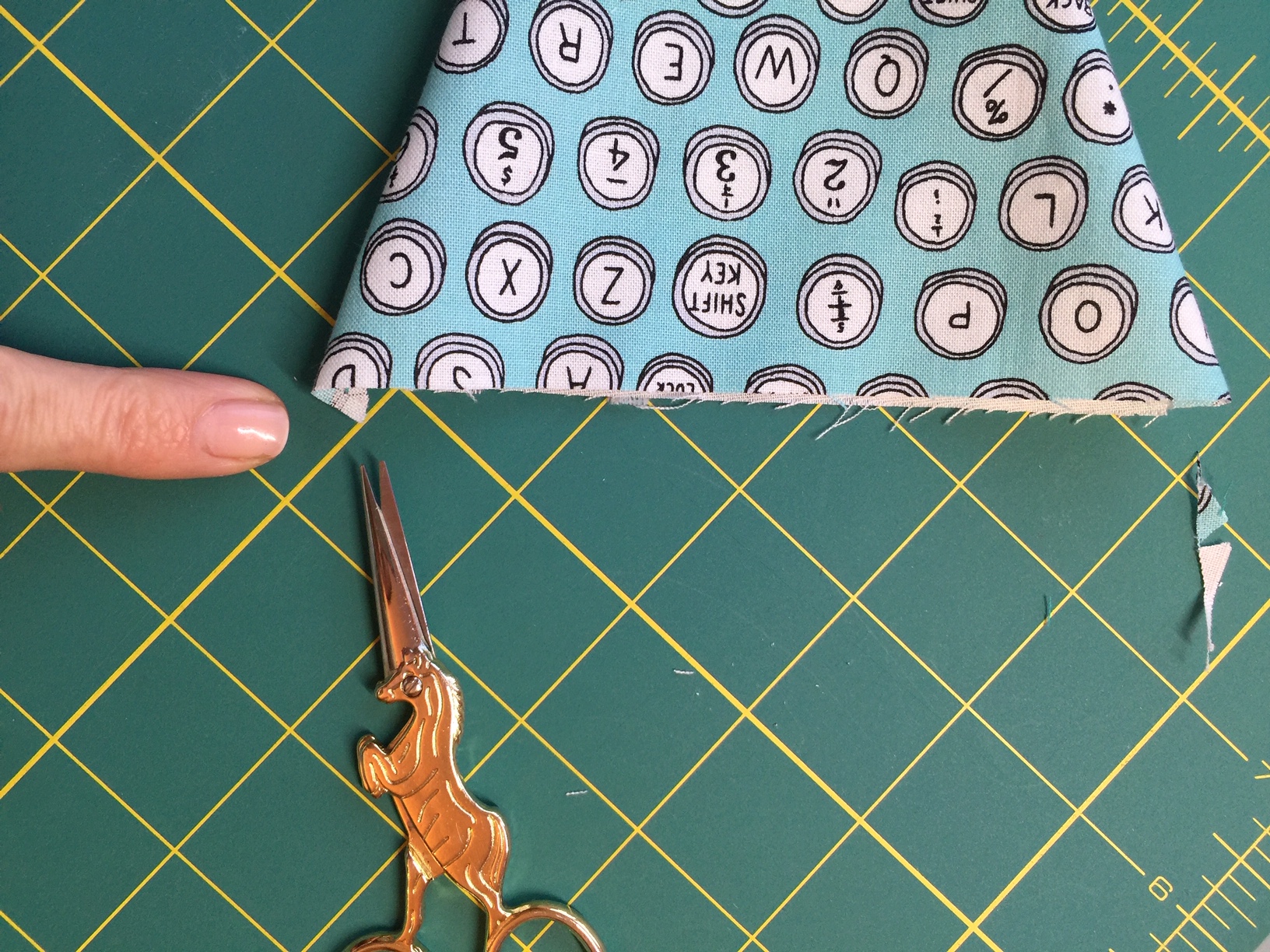 7. Trim away the little bits of fabric that are at the top (that short open end) of the triangle. This will just make it easier for you when you go to sew on your bias tape later.