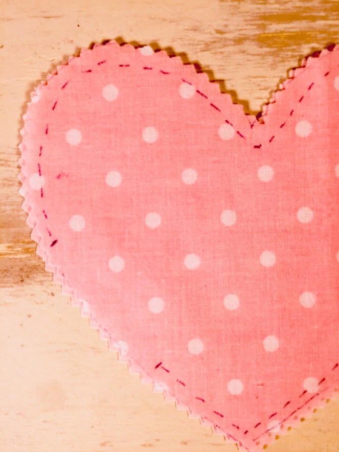 4. Using a fabric pen add a dotted line around the outside edge of one heart about ¼” from the outside edge. This will give you a guide line while you are making your stitches.