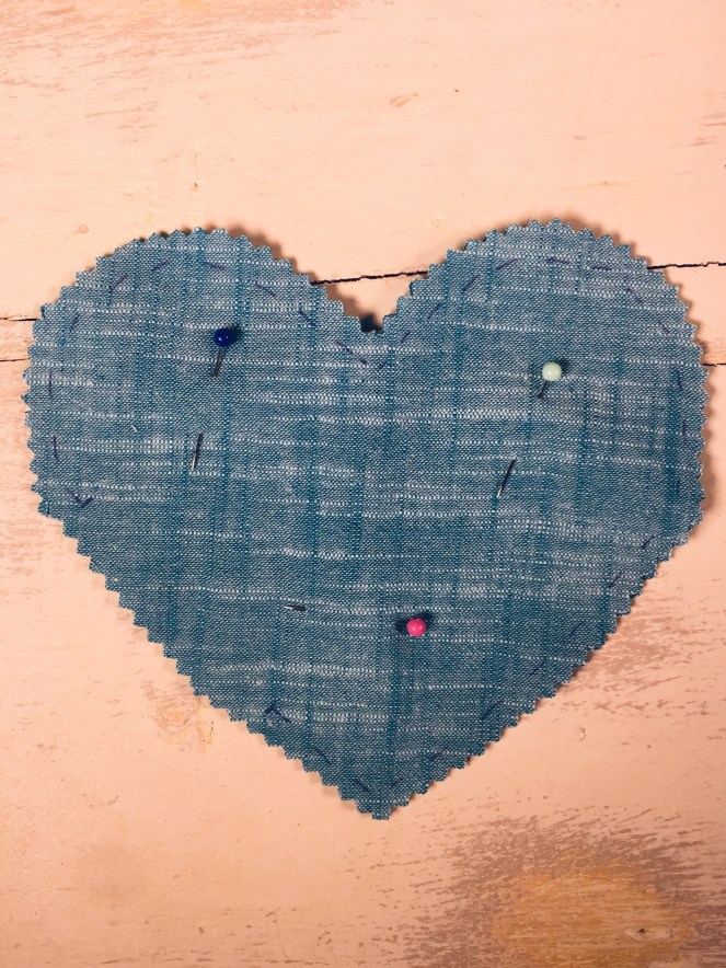 2. Begin by placing the two heart shapes wrong sides together (WST) and pin them in place.